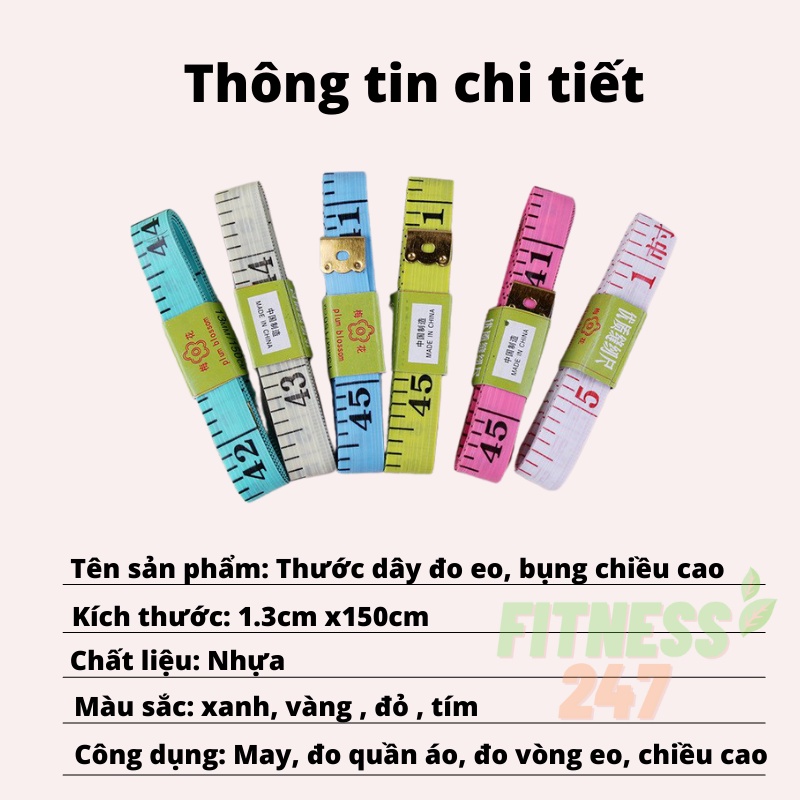 Thước dây đo eo, bụng, chiều cao, thước dây may đo dài 150cm loại có đầu sắt nhiều màu bền đẹpTHÔNG TIN CHI TIẾT THƯỚC DÂY ĐO