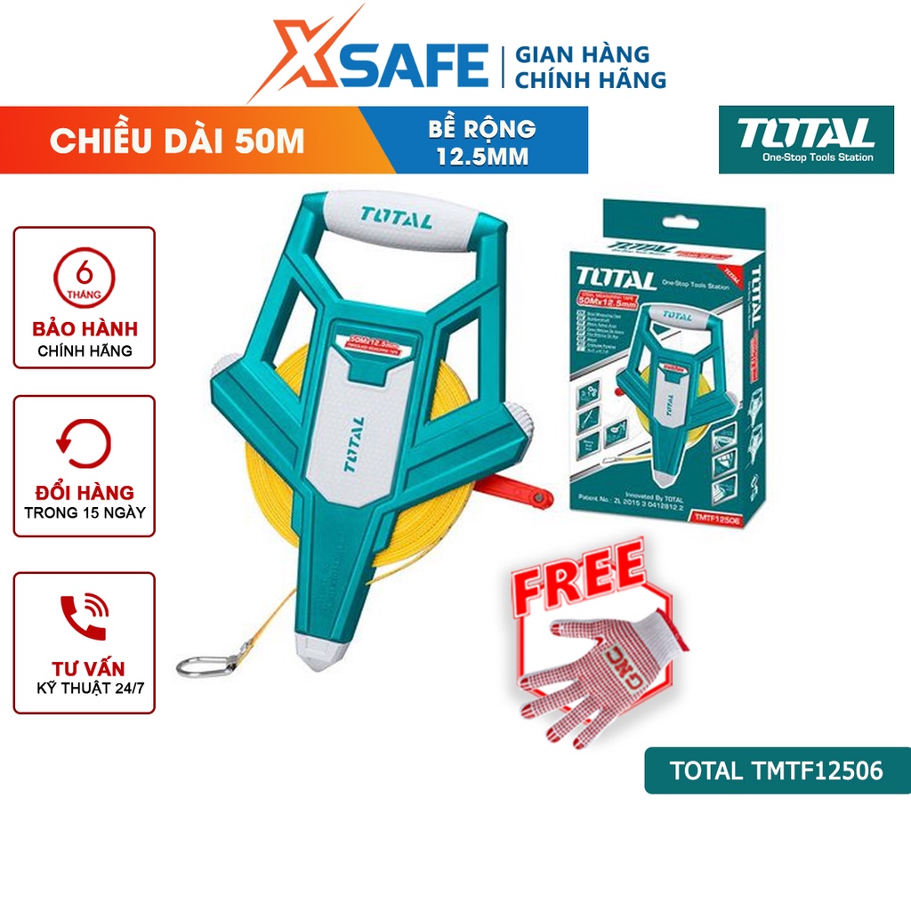 Nhà cửa & Đời sống > Dụng cụ & Thiết bị tiện ích > Dụng cụ > Dụng cụ đo lường || Thước dây làm bằng sợi thủy tinh TOTAL TMTF12506 Thước cuộn thủy tinh dài 50m, bề rộng lá thước 12.5mm - [XSAFE]Còn hàng
