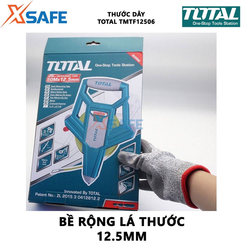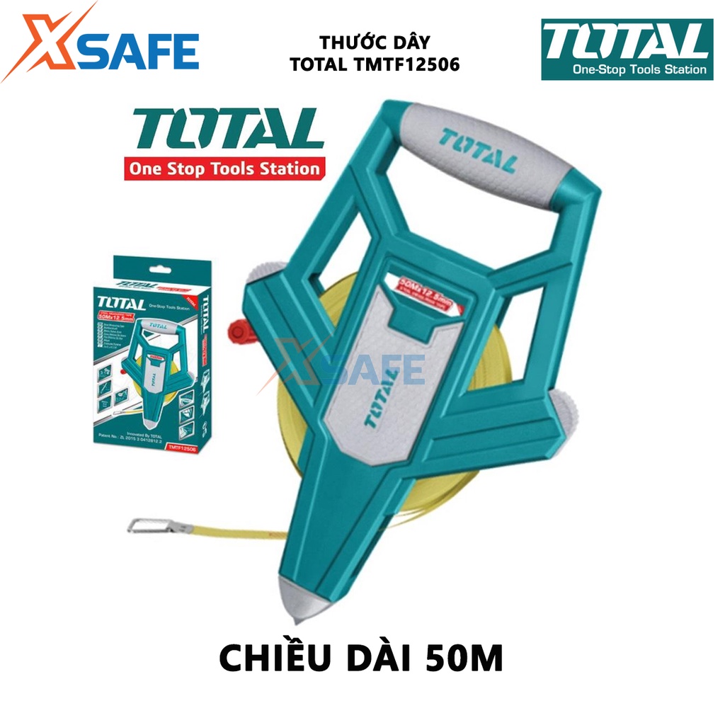 Giới thiệu Thước dây làm bằng sợi thủy tinh TOTAL TMTF12506 Thước cuộn thủy tinh dài 50m, bề rộng lá thước 12.5mm - [XSAFE]
