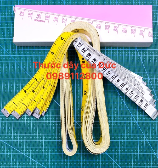 Thước dây cao cấp chính hãng của Đức, thước dây rất tốt, số nhìn rõ ràng không phai màu, không bị giãn độ dài nên do chính xác, thước 1 mặt cm và 1 mặt là inch. Thước dài 150cm tương đương 60inchThước size nhỏ rộng 1,3cm: 19k/sợi