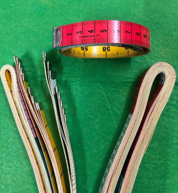 Thước dây đo cắt may loại tốt của Đức dài 150cm hay 60 inch, có 2 mặt là cm và inch, bản rộng 1,9cm, số ghi trên thước rõ nét và không bị giãn.Giá 25k/sợi
