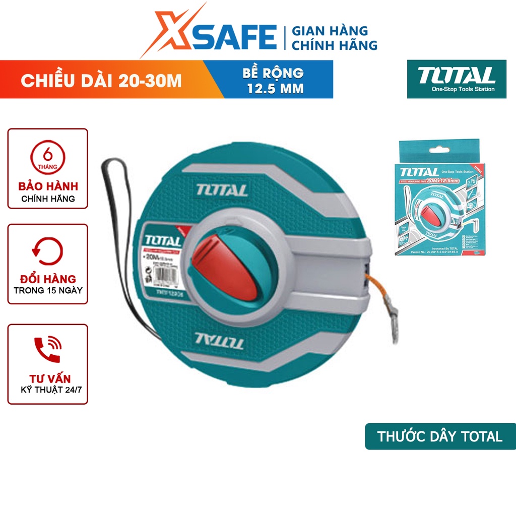 Nhà cửa & Đời sống > Dụng cụ & Thiết bị tiện ích > Dụng cụ > Dụng cụ đo lường || Thước dây sợi thủy tinh TOTAL Thước cuộn thủy tinh chiều dài 20-30m bề rộng lá thước 12.5mm độ bền cao, chịu nhiệt tốtCòn hàng
