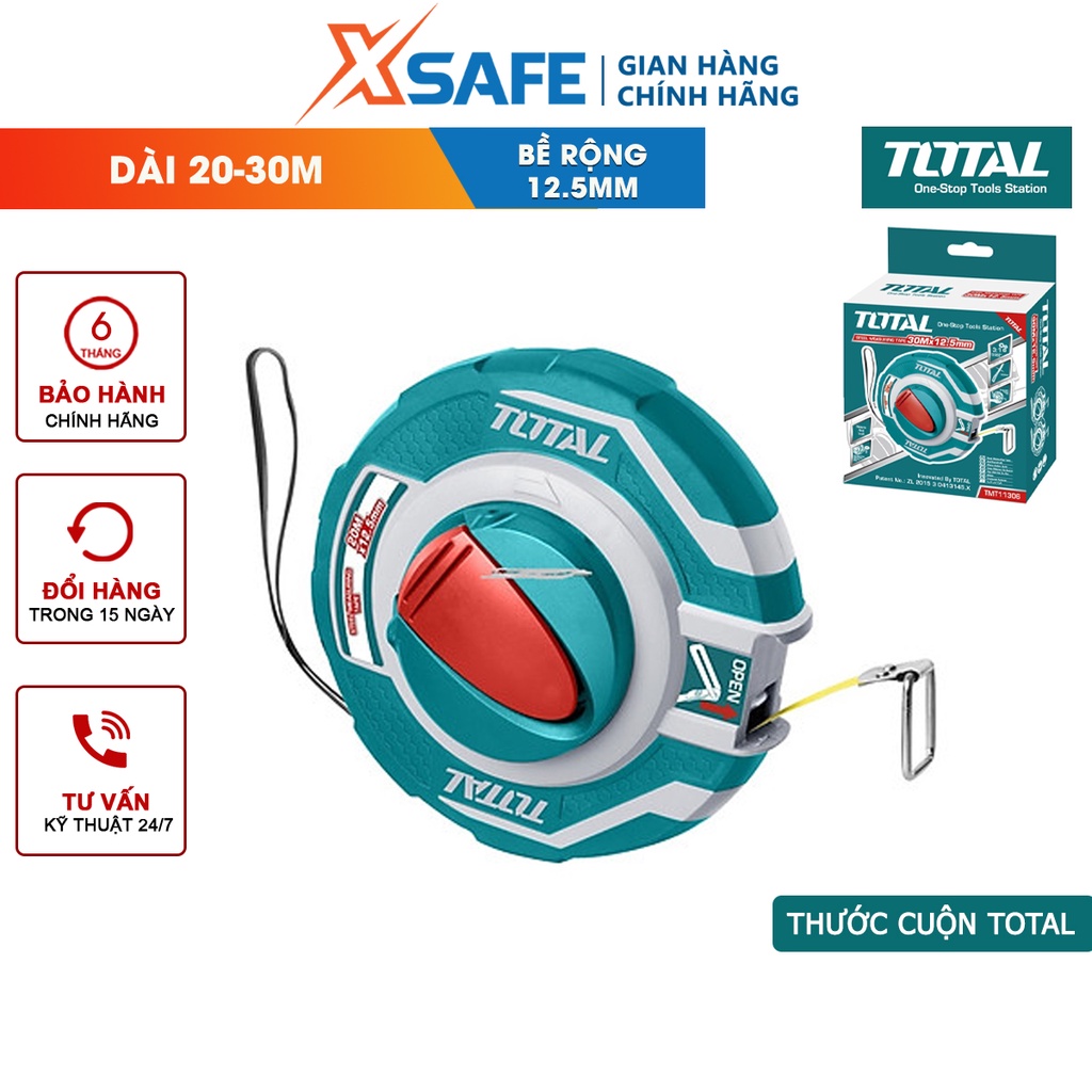 Nhà cửa & Đời sống > Dụng cụ & Thiết bị tiện ích > Dụng cụ > Dụng cụ đo lường || Thước dây sợi thủy tinh TOTAL Thước dây dài 20-30m, bề rộng lá thước 12.5mm, sợi thủy tinh mềm dẻo, uyển chuyểnCòn hàng