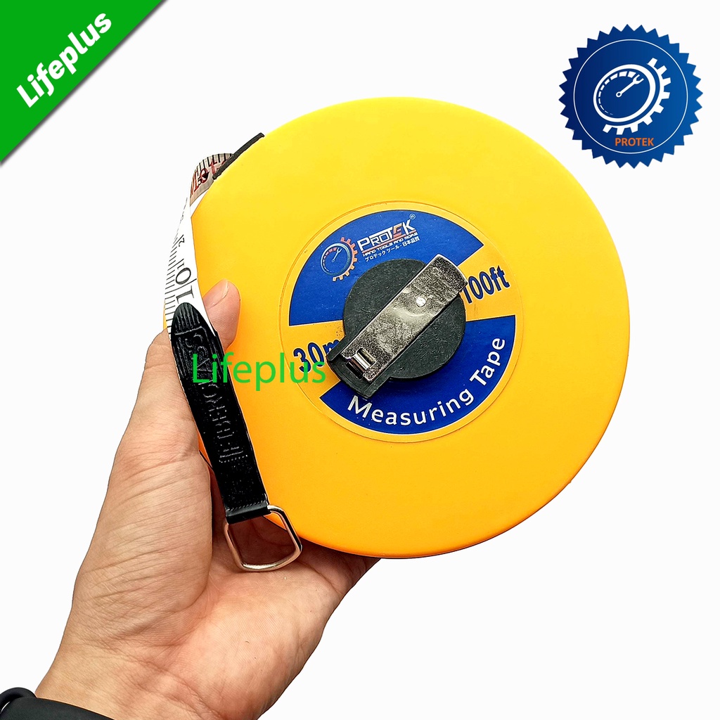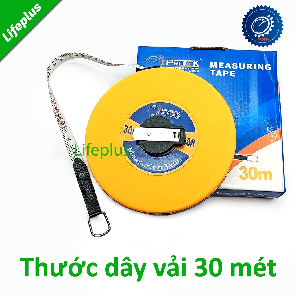 Thước dây Protek làm từ vải và sợi thủy tinh có độ bền cao, không rách, không bị kẹt trong quá trình sử dụng. Bề mặt thước mềm mại với các số đo và vạch chia được in rõ ràng, sắc nét. Người dùng có thể dễ dàng kéo dài và thu gọn thước nhờ cơ cấu bánh xe và núm vặn. Sản phẩm có thể đo lường được cả đường trẳng và đường cong, thích hợp sử dụng trong lĩnh vực xây dựng, thi công công trình, những nơi cần đo đạc các chi tiết, đồ vật có tổng chiều dài lớn.Chiều dài thước: 30 mét haowjc 20m tùy chọn