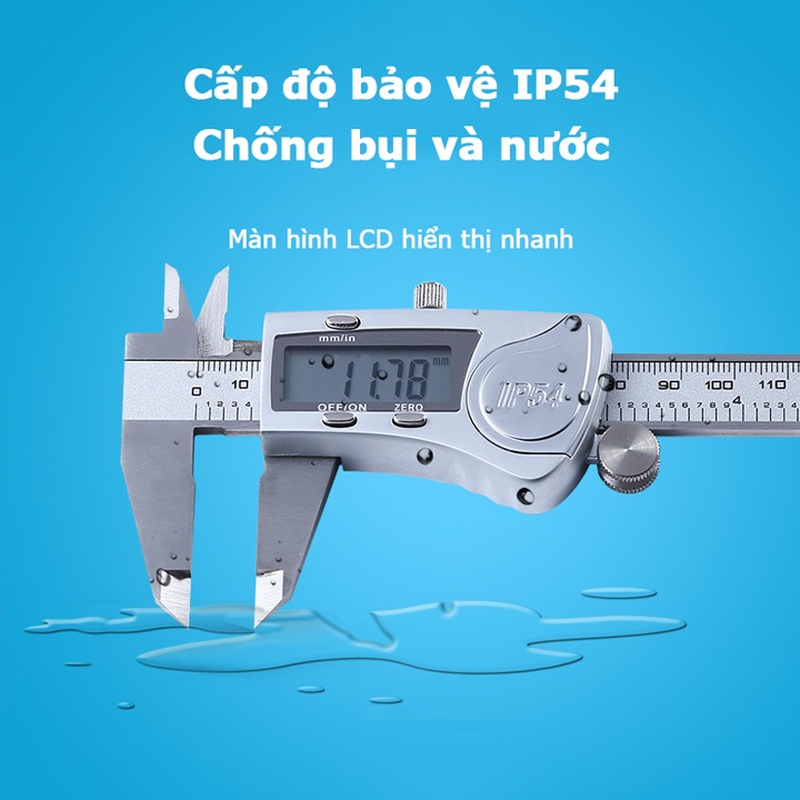 Nhà cửa & Đời sống > Dụng cụ & Thiết bị tiện ích > Dụng cụ > Dụng cụ đo lường || Thước điện tử IP54 kẹp thép không gỉ độ chính xác caoCòn hàng