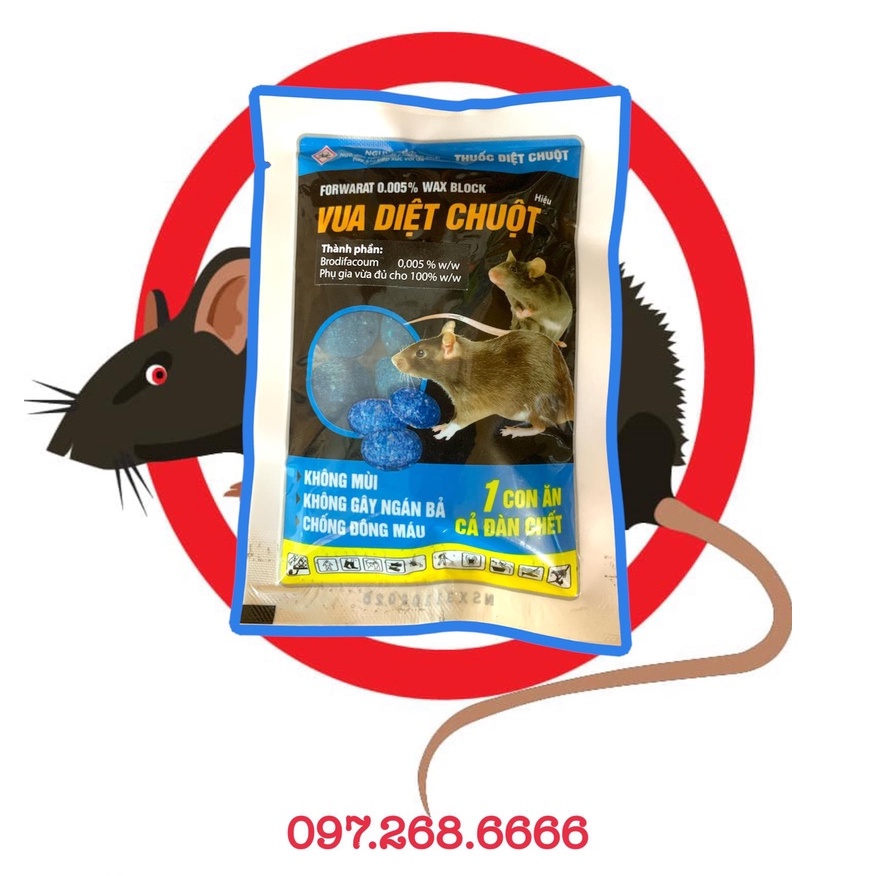 Thuốc diệt chuột chống đông máu mới nhất, mạnh nhât, diệt chuột chỉ sau 1 lần mồiSau khi ăn phải thuốc chuột sẽ chết chậm từ 3 – 5 ngày nên những con chuột khác không nghi ngờ và tiếp tục ăn đền khi bị diệt hết