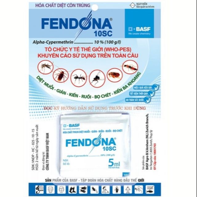 Giới thiệu Thuốc diệt côn trùng trong nhà, tẩm mùng FENDONA 10SC 5ml.