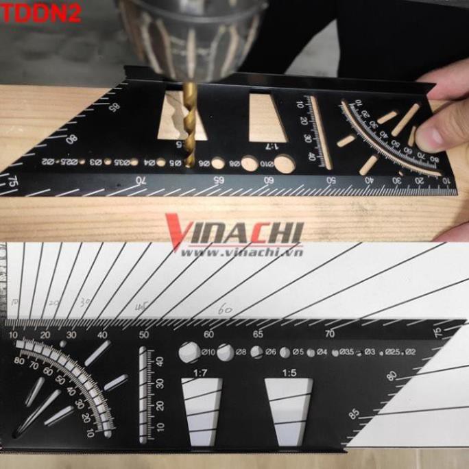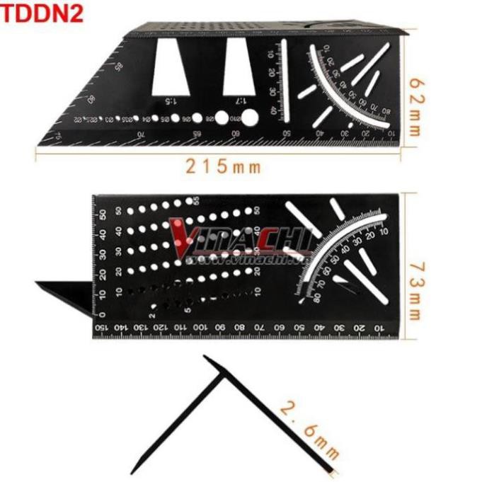 - Thước đo góc đa năng ; đo được các góc cạnh khác nhau , giúp cho người thợ đo đạc rễ ràng không phải xoay người khi đo , chỉ cần trượt để đánh dấu góc trái , phải 45 độ
