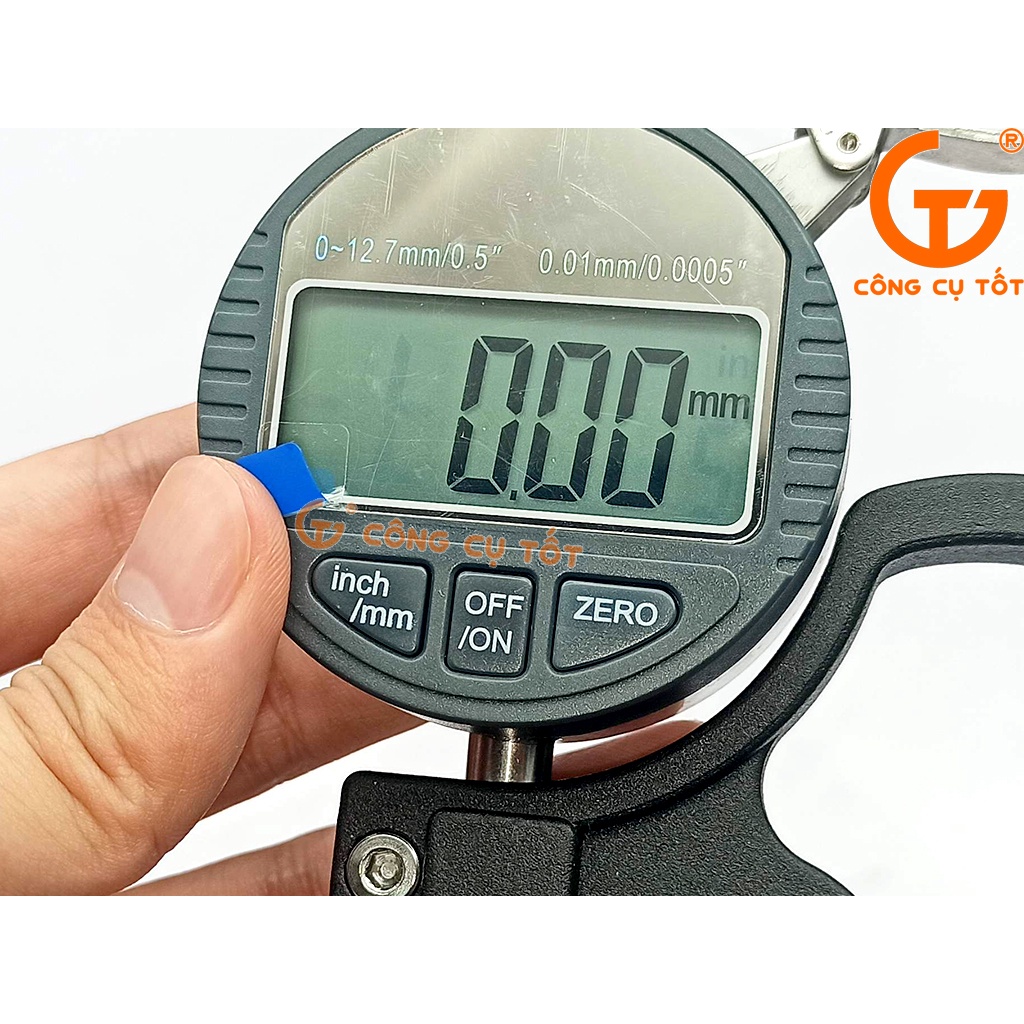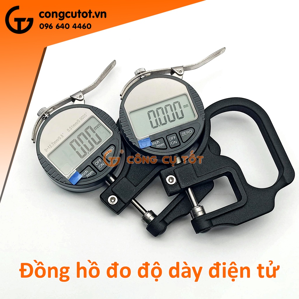Đồng hồ đo độ dày điện tử hiện số 0-12.7mm là thiết bị có độ chính xác 0.01mm cao được dùng phổ biến trong các cơ sở sản xuất dụng cụ, kỹ thuật chế tạo, kỹ thuật sản xuất đồ da, đồ gỗ, thép tấm, thước lá, ...