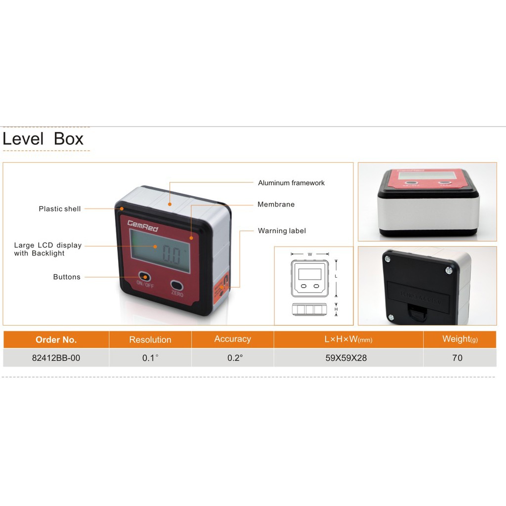 Nhà cửa & Đời sống > Dụng cụ & Thiết bị tiện ích > Dụng cụ > Dụng cụ đo lường || Thước đo độ nghiêng GEMRED, thước đo độ nghiêng kỹ thuật sốCòn hàng