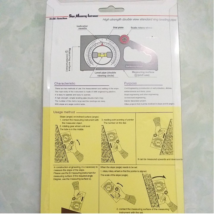 Dùng để đo góc, độ dốc, độ nghiêng của công trình trong thi công xây dựng, kiến trúc, lắp đặt trang thiết bị, trang trí nội thất...
