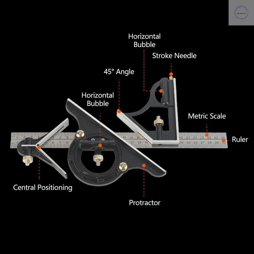 Thước đo góc vuông 300mm 90 độ° Dụng cụ đo góc vuông bằng thép không gỉ độ chính xác cao 45° Thước đo góc đa năng chuyên