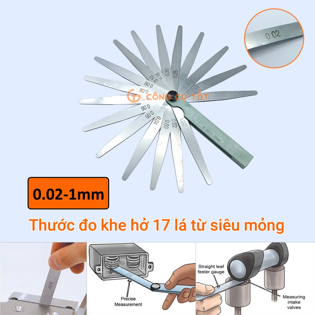 Giới thiệu Thước đo khe hở 17 lá từ siêu mỏng 0.02mm đến dày 1mm thép lò xo