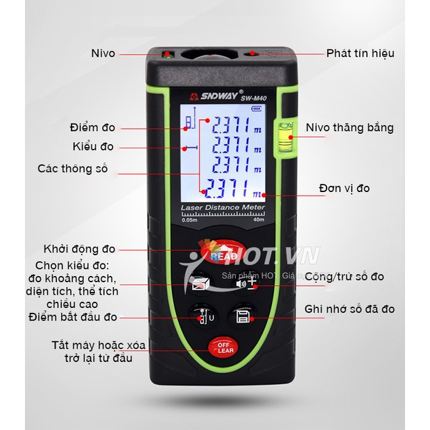Giới thiệu Thước đo khoảng cách bằng tia laser SNDWAY phạm vi 40m (SW-M40)