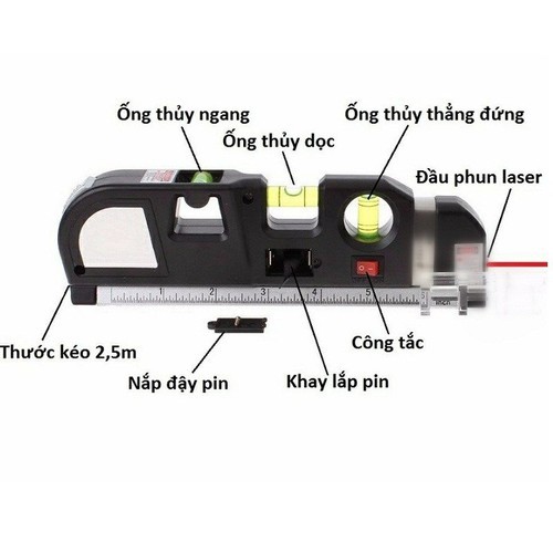 Nhiều chức năng: ni vô nằm, đứng, xiên 45 °, thước rút 2.5m, thước ngắn 15cm, laser đo cân bằng ngang.