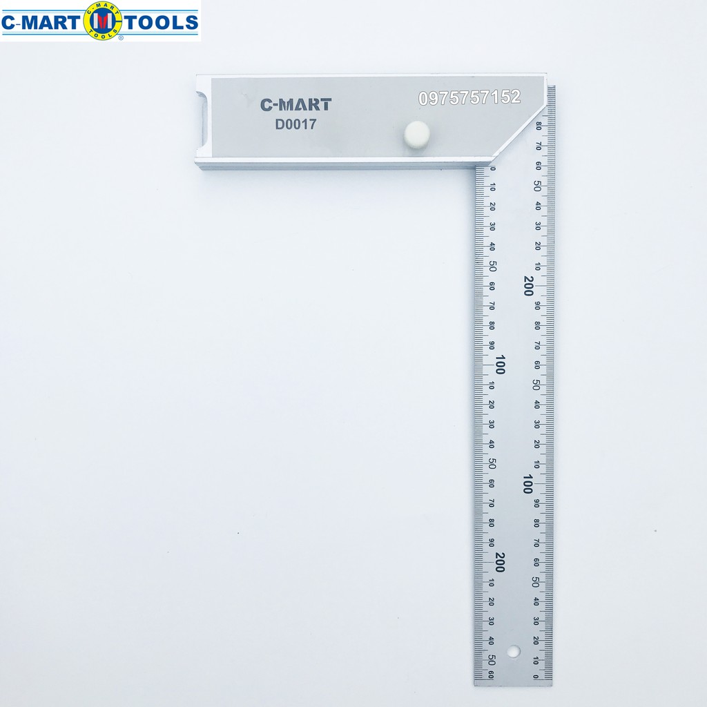 Giới thiệu Thước Ê ke vuông đo góc độ đa năng C-Mart hợp kim nhôm trắng, cán nghiêng cho phép dò đo mọi góc 5 - 90°