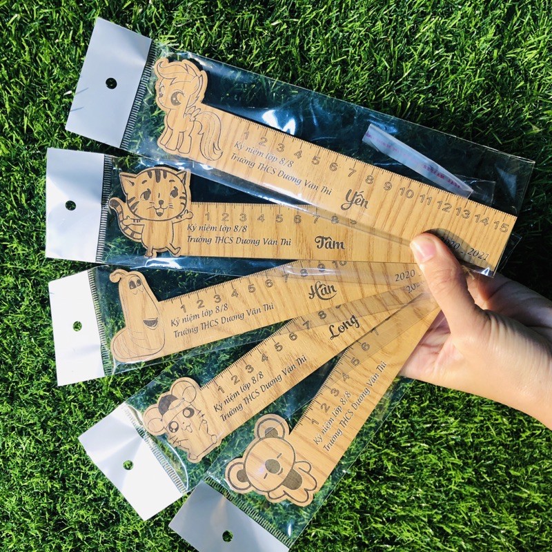 Chiếc thước kẻ là đồ dùng học tập, là người bạn thân thiết không thể thiếu của mỗi bạn học sinh mỗi khi đến trường.Nắm bắt được nhu cầu của các bạn học sinh, công ty Quà Tặng Nắng Chiều đã cho ra mắt khách hàng mẫu sản phẩm mới: Thước Gỗ Khắc Tên Và Con Vật, Họa Tiết Theo Yêu Cầu