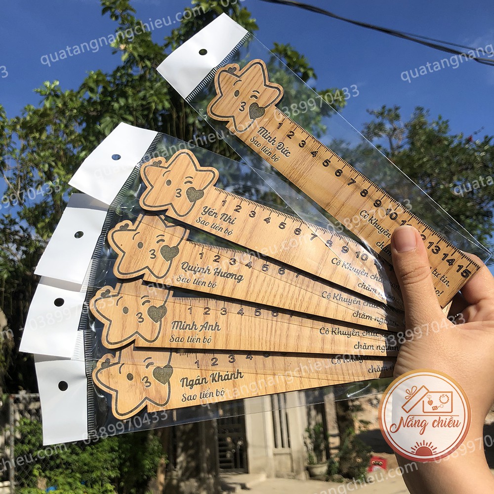 Thước gỗ khắc theo yêu cầu_ thước khắc hình ngôi sao_ Món quà ý nghĩa tặng học sinh
