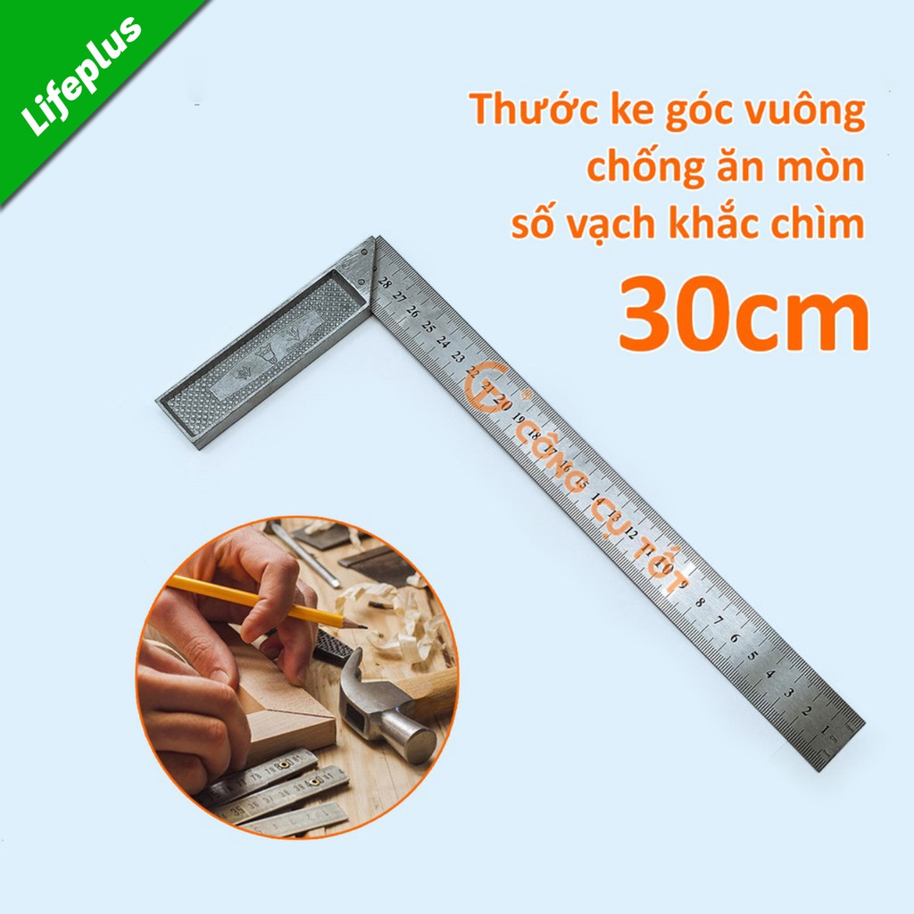 Nhà cửa & Đời sống > Dụng cụ & Thiết bị tiện ích > Dụng cụ > Dụng cụ đo lường || Thước ke góc vuông 30cm thép lò xo chống mòn rỉ số vạch khắc chìmCòn hàng