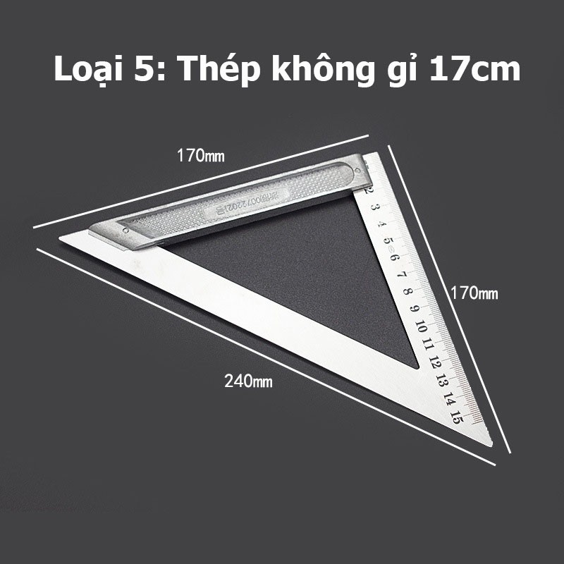 Loại 5: Thép không gỉ kích thước 17cm x17cm x24cm (hệ cm): Thước được làm từ thép chống gỉ, dùng thang đo hệ cm với độ phân giải 1mm