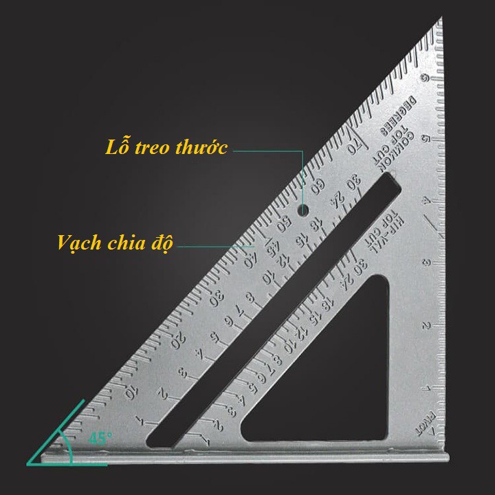 _ Ứng dụng trong nghề mộc, nhôm kính, thi công nội thất, học tập... dùng để đo đạc, ke góc, kẻ vạch, lấy dấu..._ Chất liệu: hợp kim nhôm, độ cứng và độ bền cao