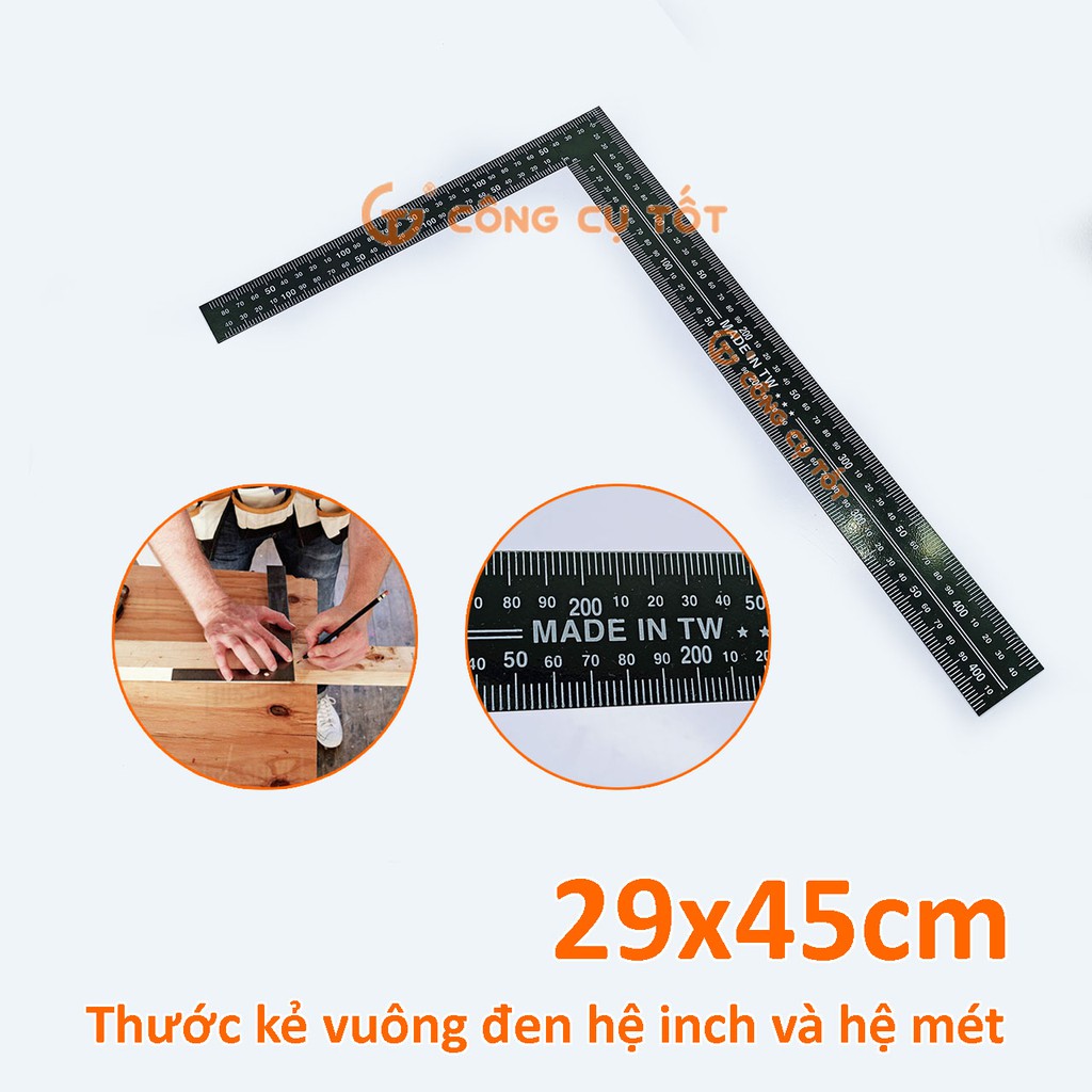 Nhà cửa & Đời sống > Dụng cụ & Thiết bị tiện ích > Dụng cụ > Dụng cụ đo lường || Thước kẻ vuông đen hệ inch và hệ mét 29x45cmCòn hàng