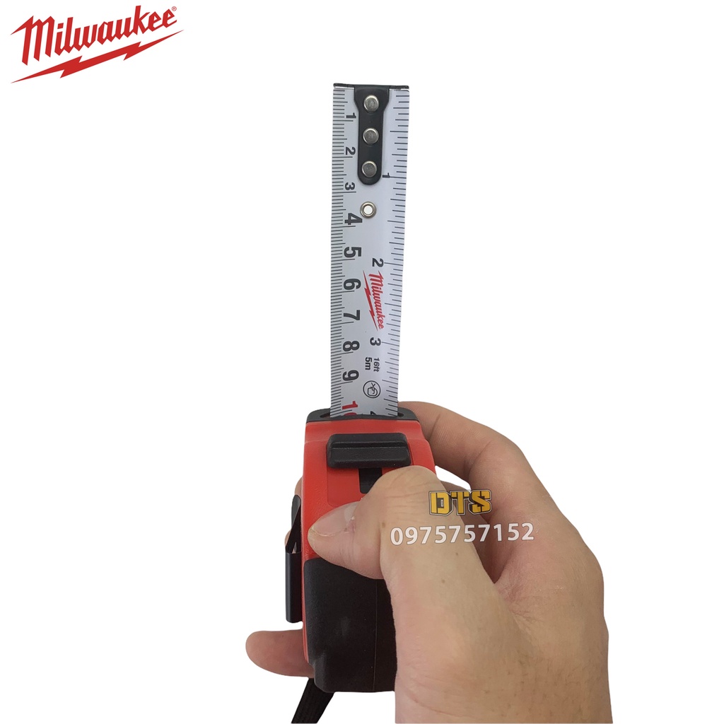 Thước kéo 5m cao cấp Milwaukee Mỹ siêu bền, thước cuộn thép nền trắng công nghiệp độ chính xác tuyệt đối, chống va đập