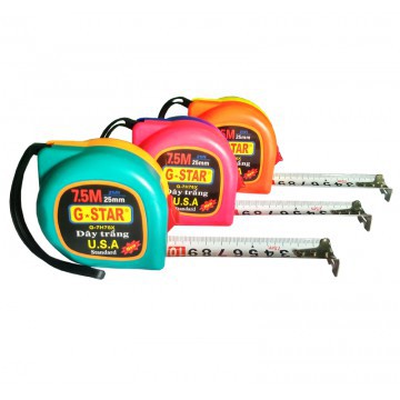 – Thước kéo Gstar là loại thước được chế tạo bằng hợp kim sắt, ít co giãn, không gỉ. Có khả năng kéo ra và cuộn lại nhờ có lò xo bên trong, chiều dài cuộn dây bên trong 7.5M