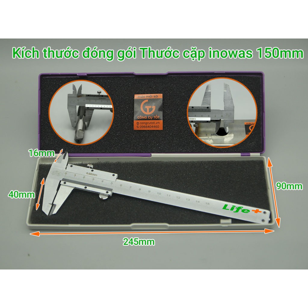 Thước đo được kích thước từ 0-150mm / 0-200mm, độ sai số là 0.02mm