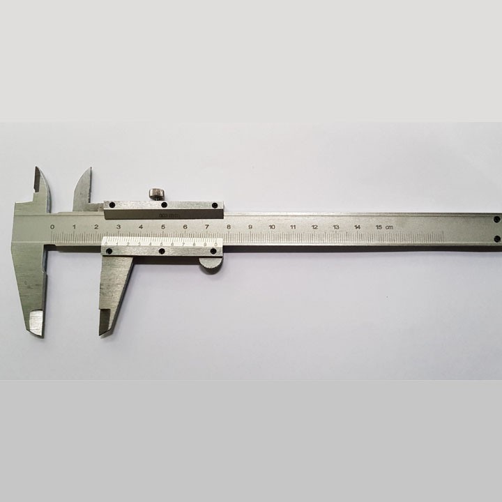 Thước kẹp cơ khí 150mm:Thước Kẹp hay Thước Cặp là một loại dụng cụ đo khá chính xác, được sử dụng nhiều trong những ngành sản xuất như: cơ khí, đồ gỗ, đồ nhựa, nhôm kính ... Thước Kẹp dùng để đo kích thước như chiều dài, rộng của chi tiết hình trụ, vuông hay đo đường kính trong, đường kính ngoài, chiều sâu với độ chính xác tương đối cao.