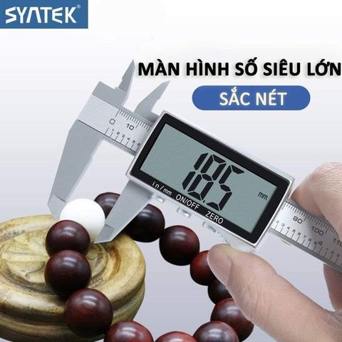 Thước kẹp điện tử màn hình LCD lớn 150mm nhựa carbon là dụng cụ đo lường rất đa dụng, phục vụ cho nhiều mục đích khác nhau như cho thợ săm, tóc, chân mày, sắt si...Đây là dòng Thước kep điện tử giá rẻ 150mm của Syntek được chế tạo hoàn toàn 100% từ nhựa carbon, một loại nhựa cho khả năng bền bỉ và dẻo dai, hạn chế việc bị gãy khi đo các vật nặng, không sợ bụi bẩn và bị rỉ theo thời gian.