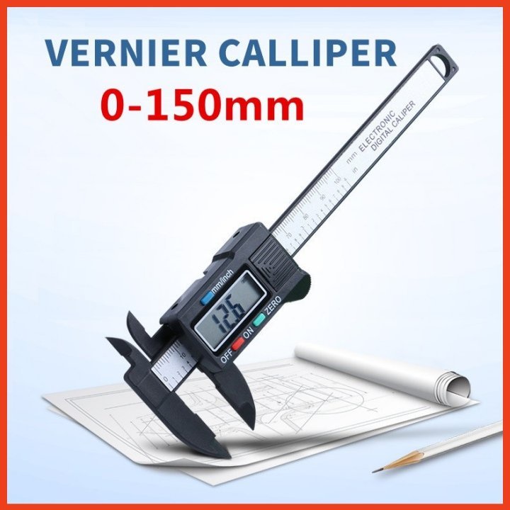 Nhà cửa & Đời sống > Dụng cụ & Thiết bị tiện ích > Dụng cụ > Dụng cụ đo lường || Thước kẹp điện tử nhựa cacbon 150mm tặng kèm pinCòn hàng