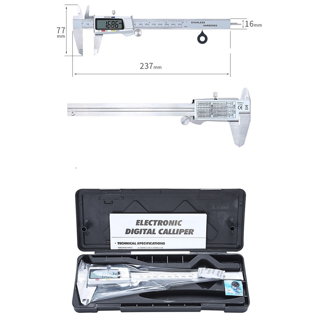 1. 1x thước kẹp điện tử thép không gỉ 150mm.