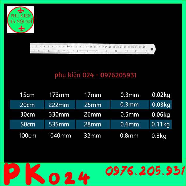Thước đo 20cm độ dày 0.3mm