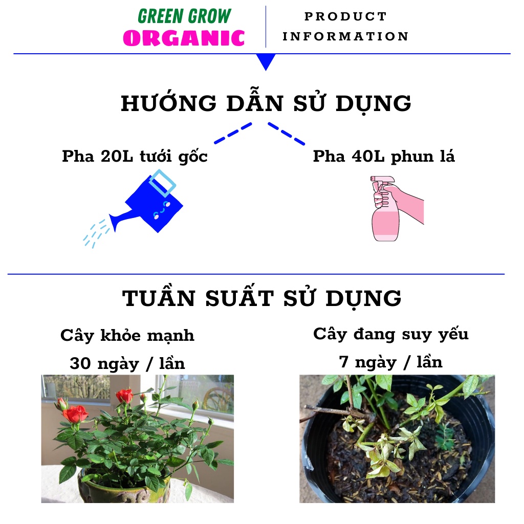 ✨ Phục hồi cây đang suy yếu : Pha 1 gói với 10 lit nước và tưới gốc, tưới 3 lần liên tiếp cách nhau 3 ngày