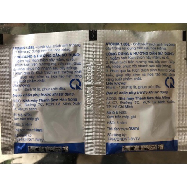 Nhà cửa & Đời sống > Làm vườn > Phân bón || THUỐC KÍCH THÍCH SINH TRƯỞNG CÂY TRỒNG ATONIK 1.8 SL (1 GÓI 10ML ) - CÂY LỚN NHANH, NĂNG SUẤT CAOCòn hàng