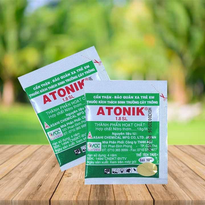 Là thuốc kích thích sinh trưởng cây trồng thế hệ mới. Cũng như các loại vitamin Atonik làm tăng khả năng sinh trưởng đồng thời giúp cây trồng tránh khỏi những ảnh hưởng xấu do những điều kiện sinh trưởng không thuận lợi gây ra.Quy cách: Gói 10ml (Hộp 10 gói)