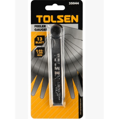 Bộ thước lá Tolsen 35004 với 13 lá thước đo độ dày từ 0.05mm-1mmSản phẩm có độ dài mỗi lá thước là 100mm (10cm), được mạ Chrome để chống rỉ sét và chống mài mòn sau nhiều lần đo.