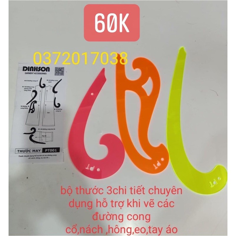 bộn thước may 3món hỗ trợ thiết kế trong nghề may ,chất liệu mica giúp hỗ trợ đánh cong các đường hông eo mông dễ dàng hơnGiá BREAD