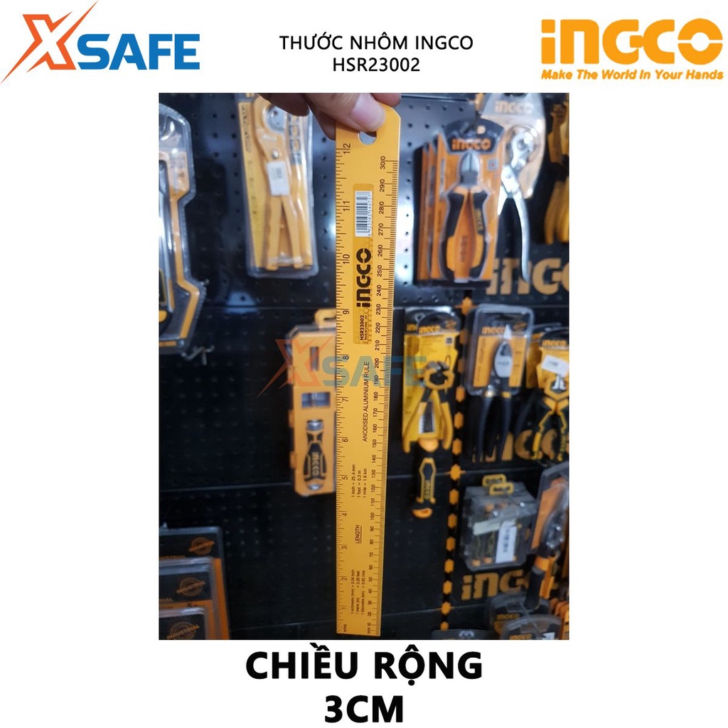 Thước nhôm INGCO HSR23002 Thước lá chiều dài 30cm, rộng 3cm, chất liệu nhôm anodized độ cứng cao, không bị mài mòn