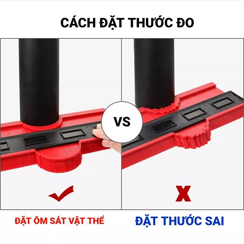 Dễ sử dụng. Chỉ cần ấn thước đo đường viền lên một hình dạng. Sao chép hồ sơ và cắt thành hình. Lý tưởng để lắp gạch, Laminate, thảm, kiểm tra kích thước, khuôn, v.v...