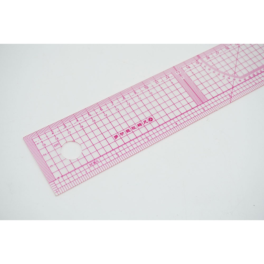 Thước kẻ thẳng bằng nhựa mềm chuyên dụng trong cắt may.Thước dài 55cm, tích hợp thước đo góc dễ dàng xác định góc khi cắt may.