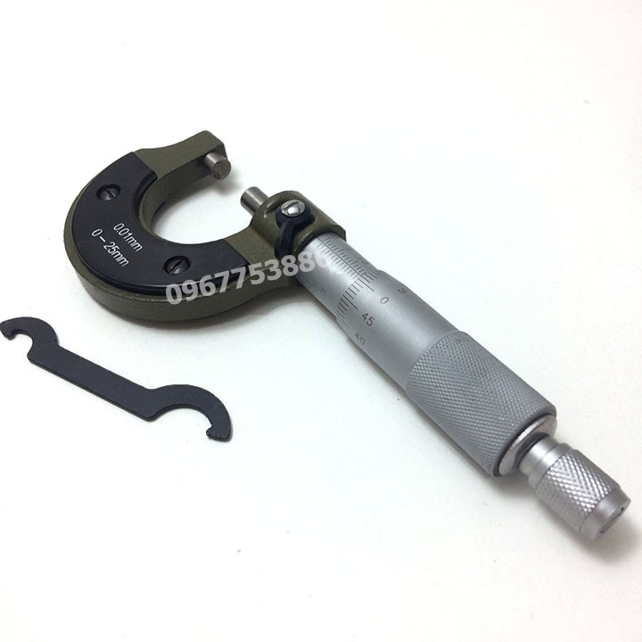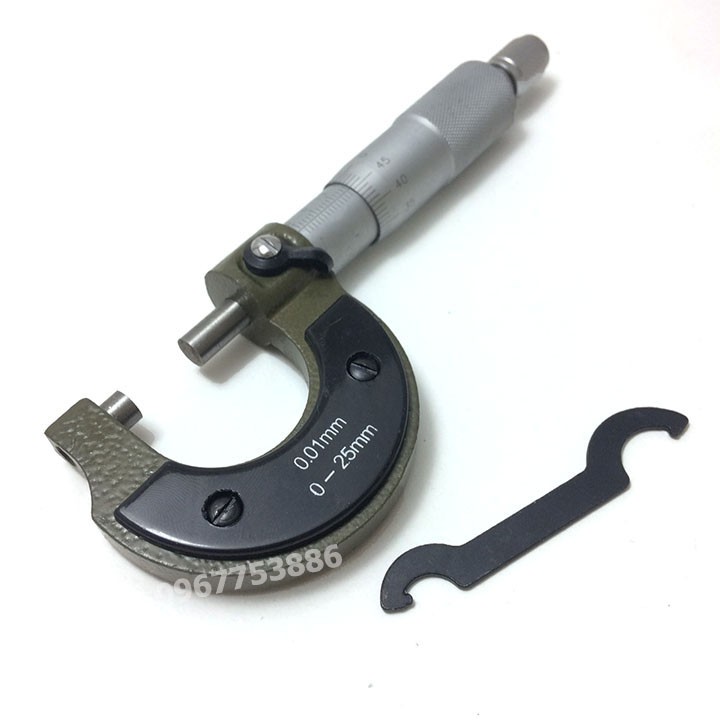 - Panme đo ngoài cơ khí với dải đo 0-25mm, độ chia là 0.01mm. Là dụng cụ đo lường hữu ích cho việc phải thực hiện chính xác cao. Đơn vị hệ mét để đo chính xâc đường kính ngoài OD. Độ chính xác: ±3micromet