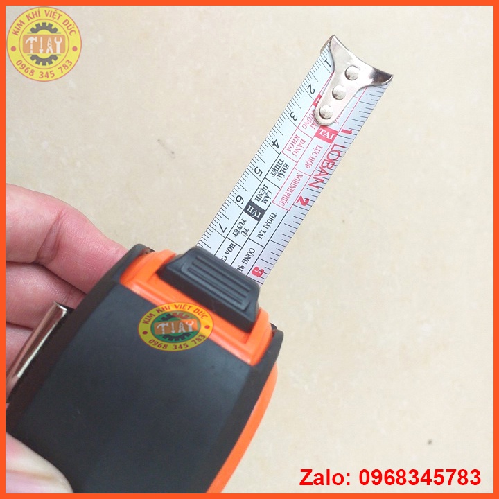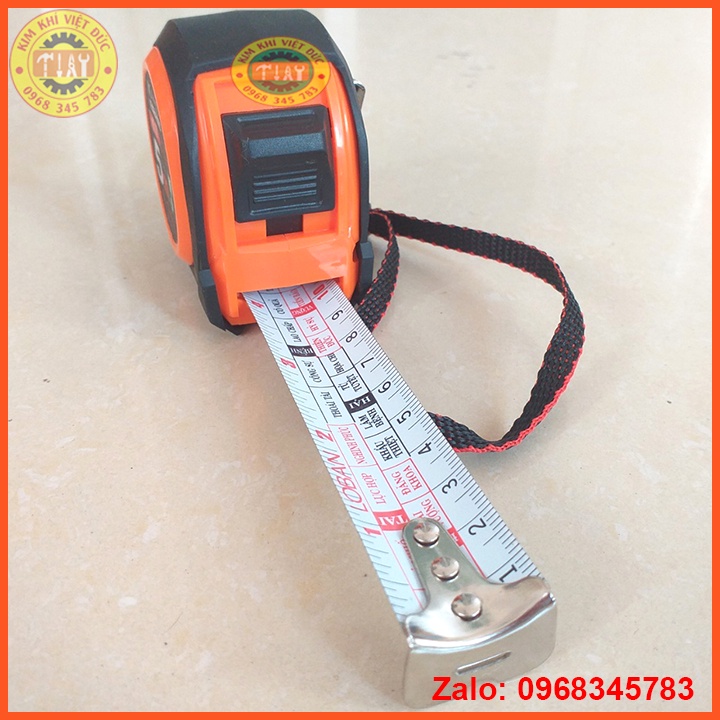 - Phần đầu dây thước được tích hợp khóa kim loại, giúp dễ dàng kéo ra khi đo, thật tiện dụng! Thước cuốn thép sử dụng thang đo hệ met và inch, chi tiết và số đo được in rõ ràng trên lá thước, cho người dùng dễ dàng đọc kết quả đo.