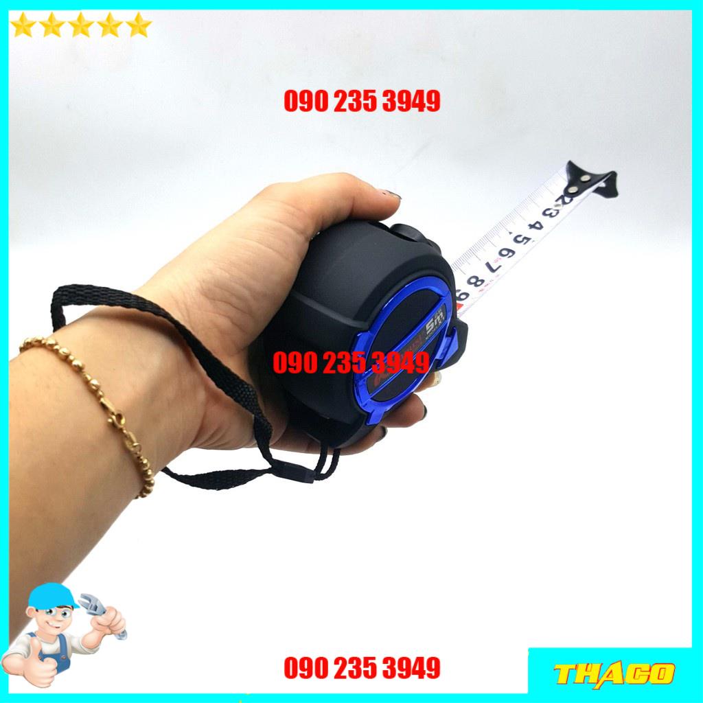 - Thiết kế nhỏ gọn, tiện dụng. Vỏ ngoài bằng nhựa cao cấp bọc lấy thước đo cuộn vòng dài 5 mét. Thước được làm từ thép hợp kim mỏng, mềm dẻo dễ sử dụng.
