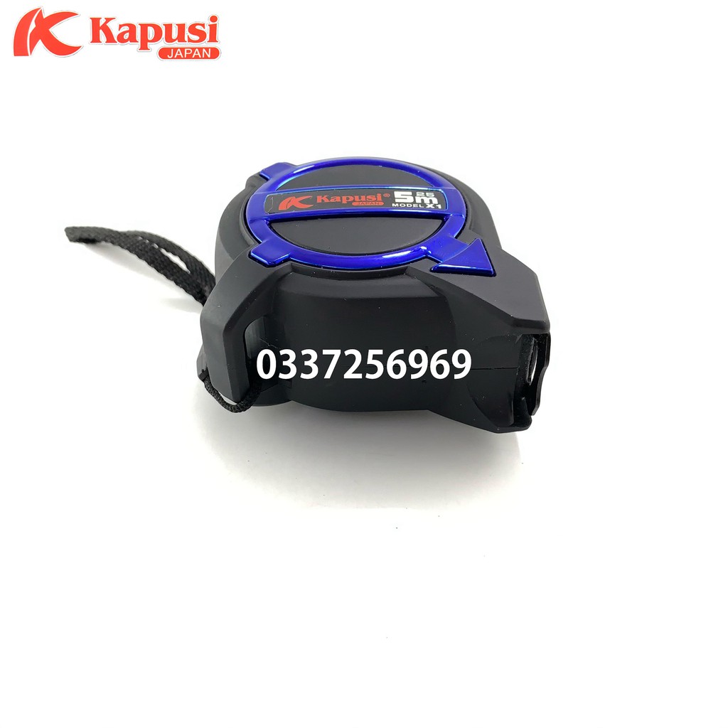 Thước rút - Thước cuộn 5m Kapusi Japan và bề ngang lá thước 25mm với 2 hệ đo là mét. Các chỉ số trên mặt thước rõ ràng, giúp đọc chính xác.