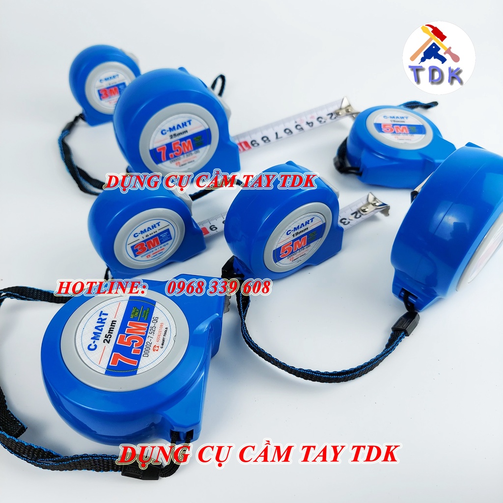 Nhà cửa & Đời sống > Dụng cụ & Thiết bị tiện ích > Dụng cụ > Dụng cụ đo lường || Thước rút, thước cuộn thép 2M 3M 5M 7,5M 10M C-Mart (Đài Loan)Còn hàng