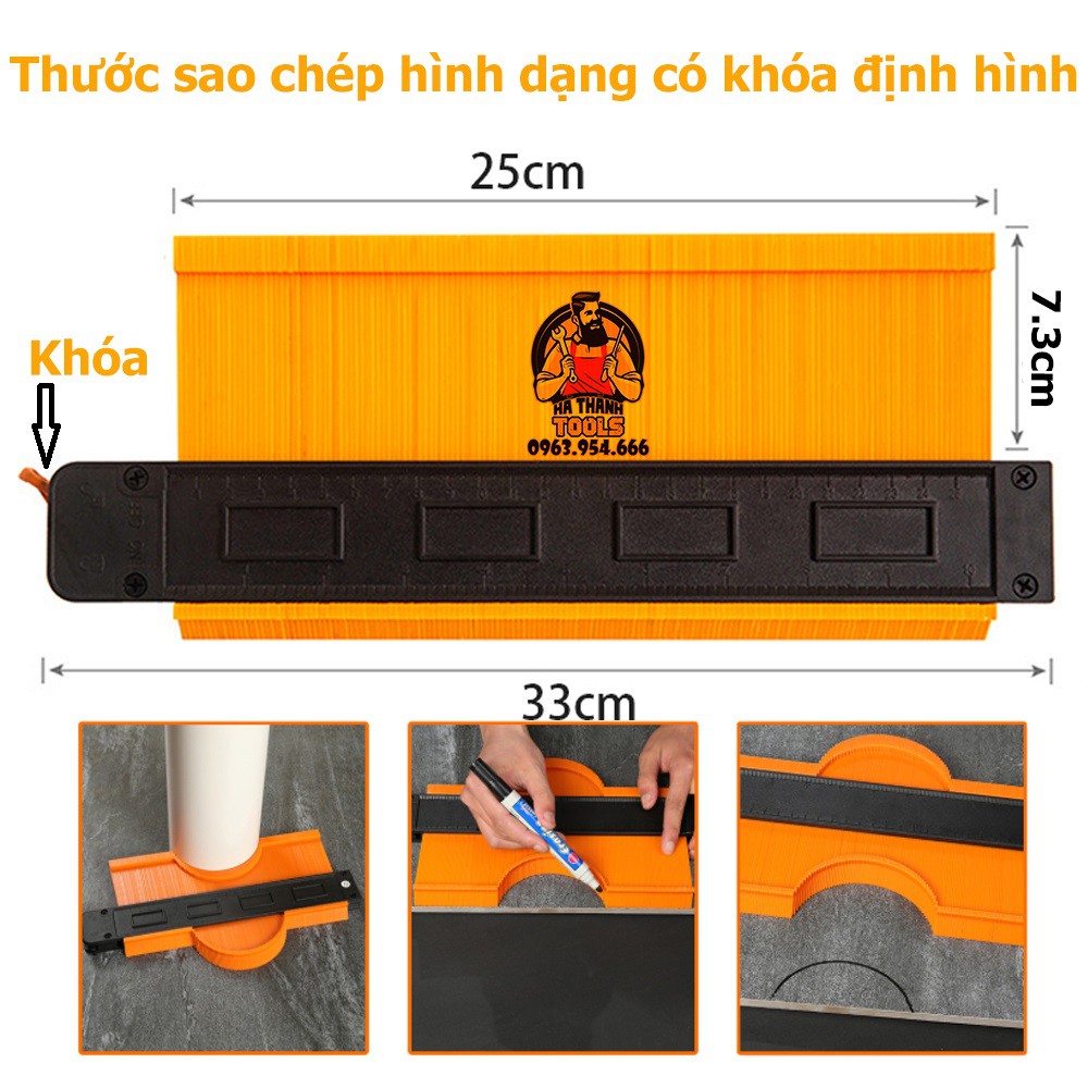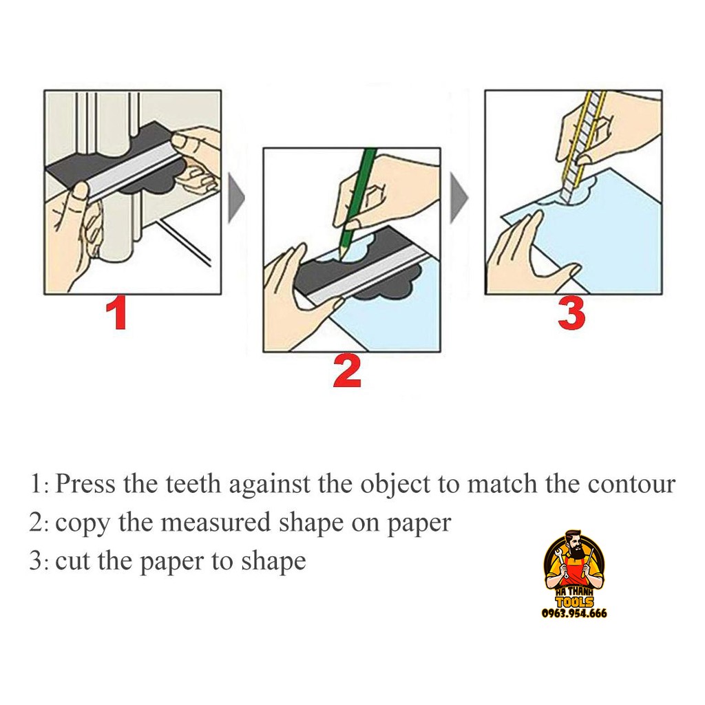- Sử dụng thuận tiện: Chỉ cần nhấn phần răng của thước chép đường viền vào đối tượng mục tiêu, sau đó theo dõi hình dạng bạn nhận được, đây là dụng cụ hữu ích cho thợ mộc, thợ xây dựng.