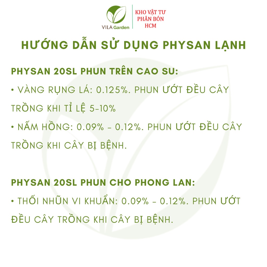 Nhà cửa & Đời sống > Làm vườn > Phân bón || Thuốc Sát Khuẩn Trừ Nấm Bệnh PHYSAN 20SL (100ml), Physan lạnhCòn hàng