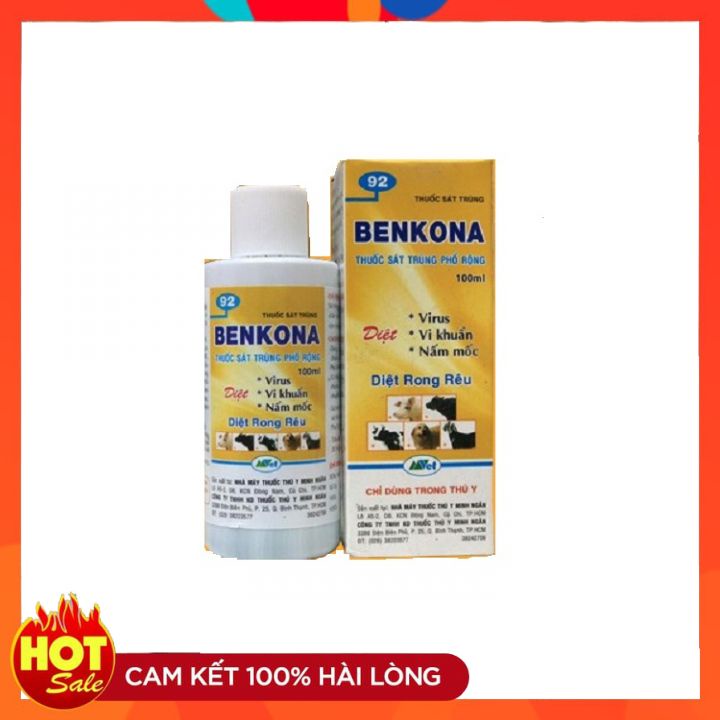 BENKONA 100ml– Benzalkonium Chloride là một hợp chất hữu cơ bắt đầu được đưa vào sử dụng vào năm 1935. Tiêu thụ toàn cầu vào năm 2005 vào khoảng gần 2 triệu tấn với nhiều mục đích khác nhau như xử lý vải sợi, giấy, xử lý nước, vệ sinh dụng cụ y tế, chăn nuôi, nuôi trồng thủy sản, sát trùng vết thương trên người và động vật…